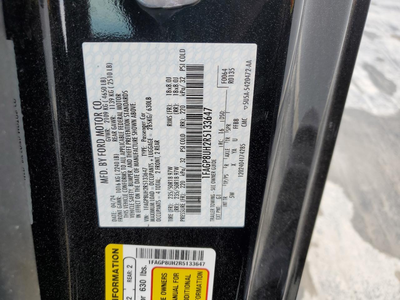 FORD ALL Models BLACK 1FAGP8UH2R5133647