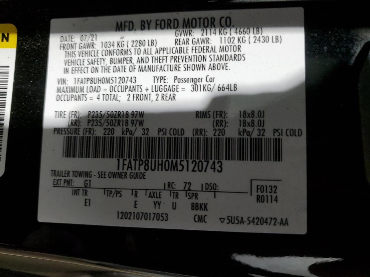 FORD ALL Models BLACK 1FATP8UH0M5120743
