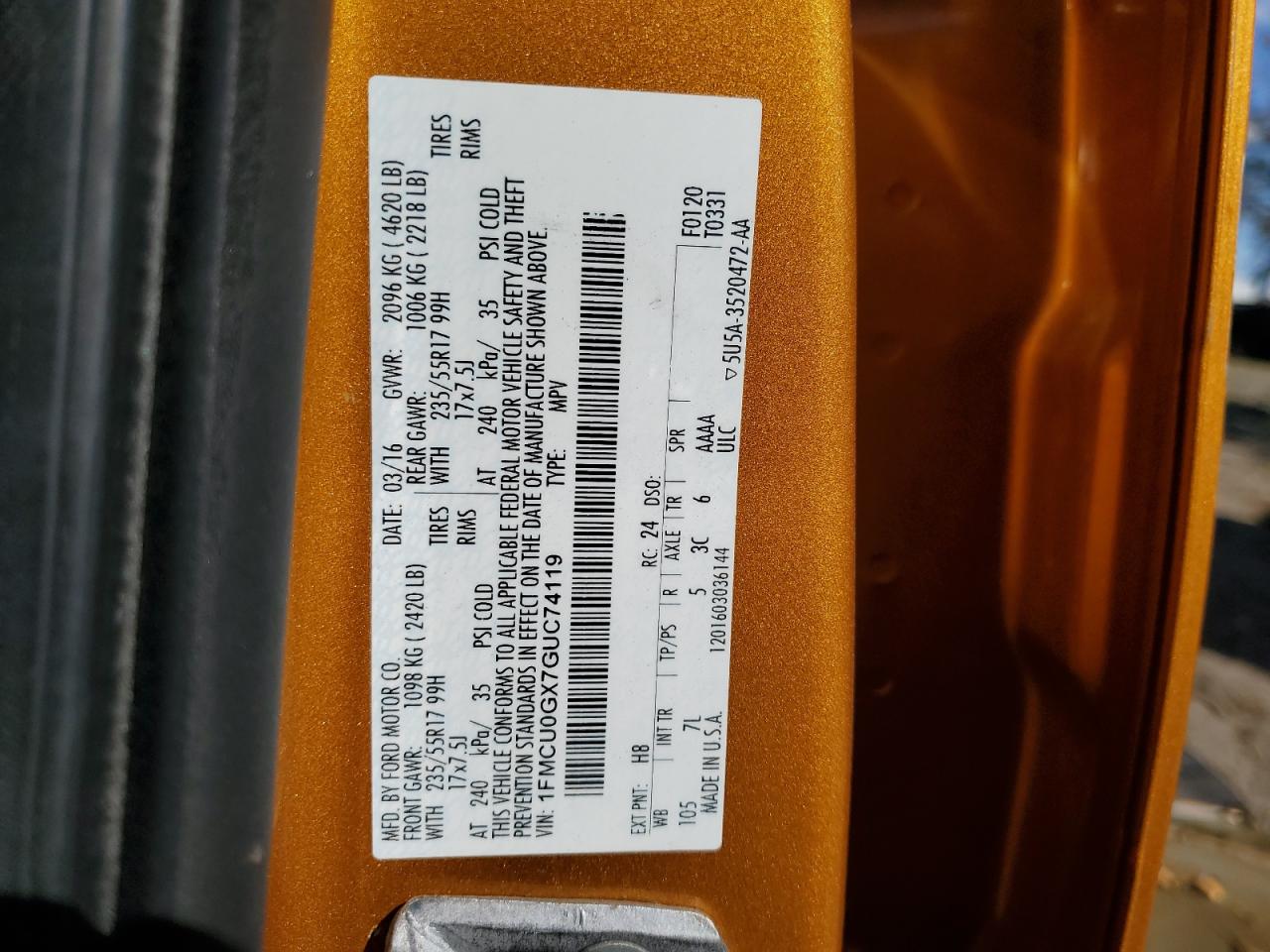 FORD ESCAPE ORANGE 1FMCU0GX7GUC74119