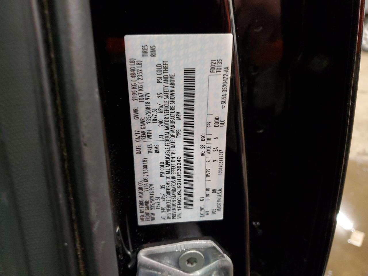 FORD ESCAPE BLACK 1FMCU9J92HUE36240