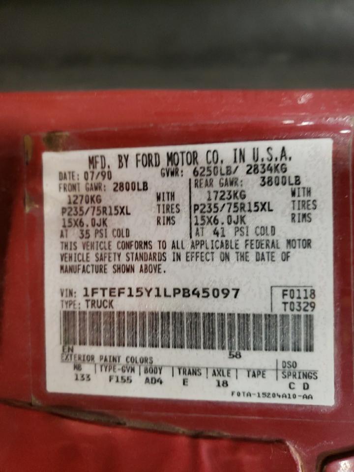 FORD All Models RED 1FTEF15Y1LPB45097
