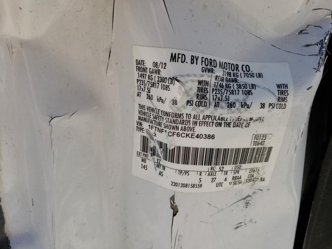 FORD All Models WHITE 1FTNF1CF6CKE40386