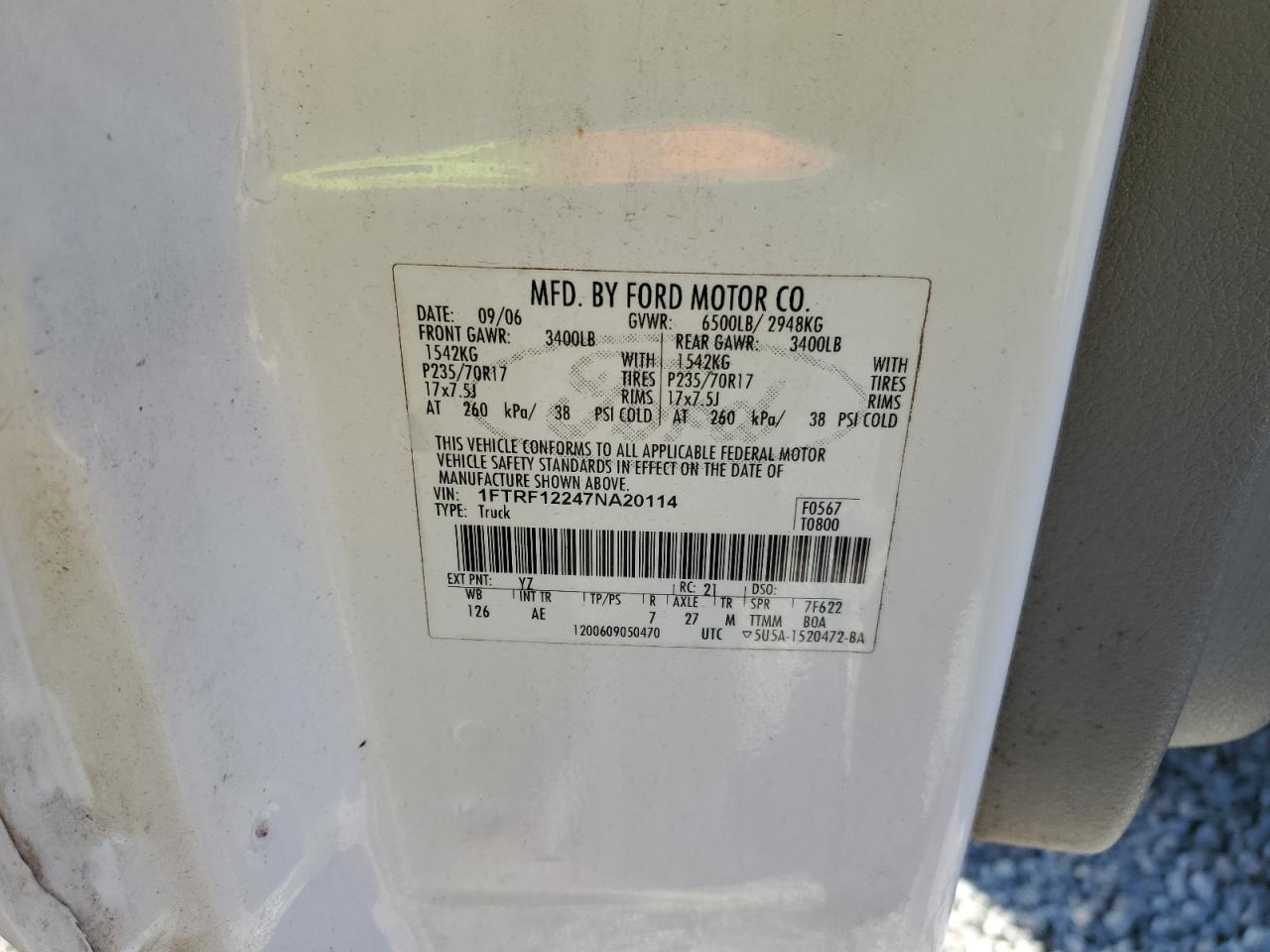 FORD All Models WHITE 1FTRF12247NA20114