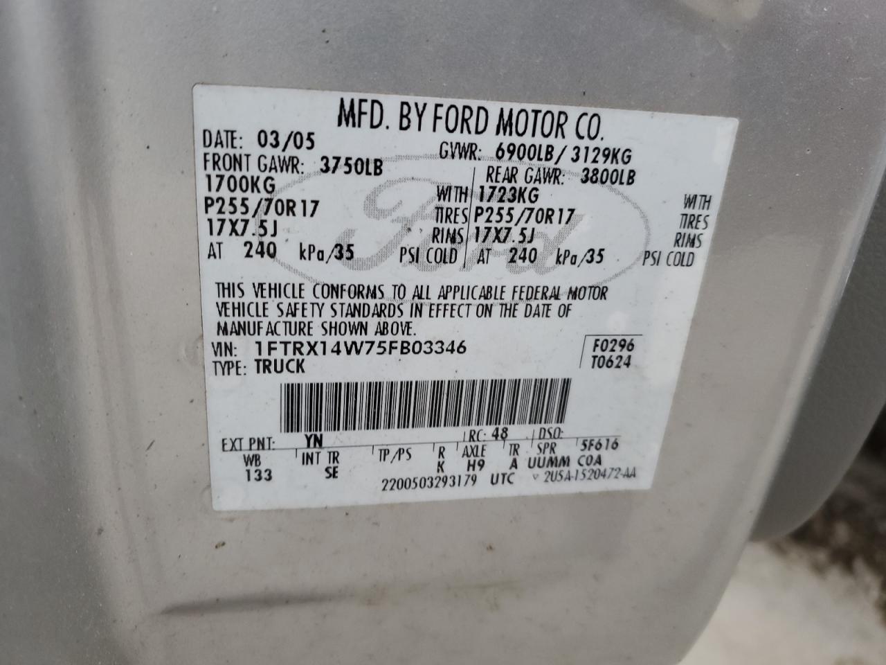 FORD All Models SILVER 1FTRX14W75FB03346