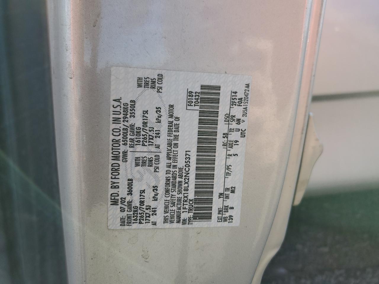 FORD All Models SILVER 1FTRX18LX2NC05371