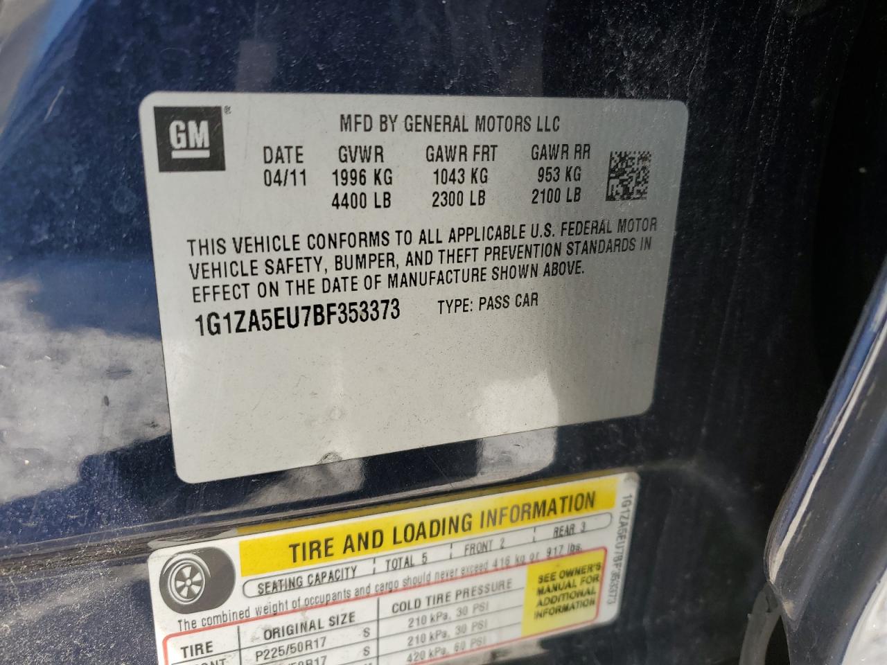 CHEVROLET MALIBU BLUE 1G1ZA5EU7BF353373