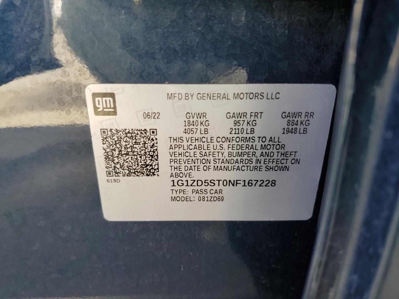 CHEVROLET MALIBU BLUE 1G1ZD5ST0NF167228