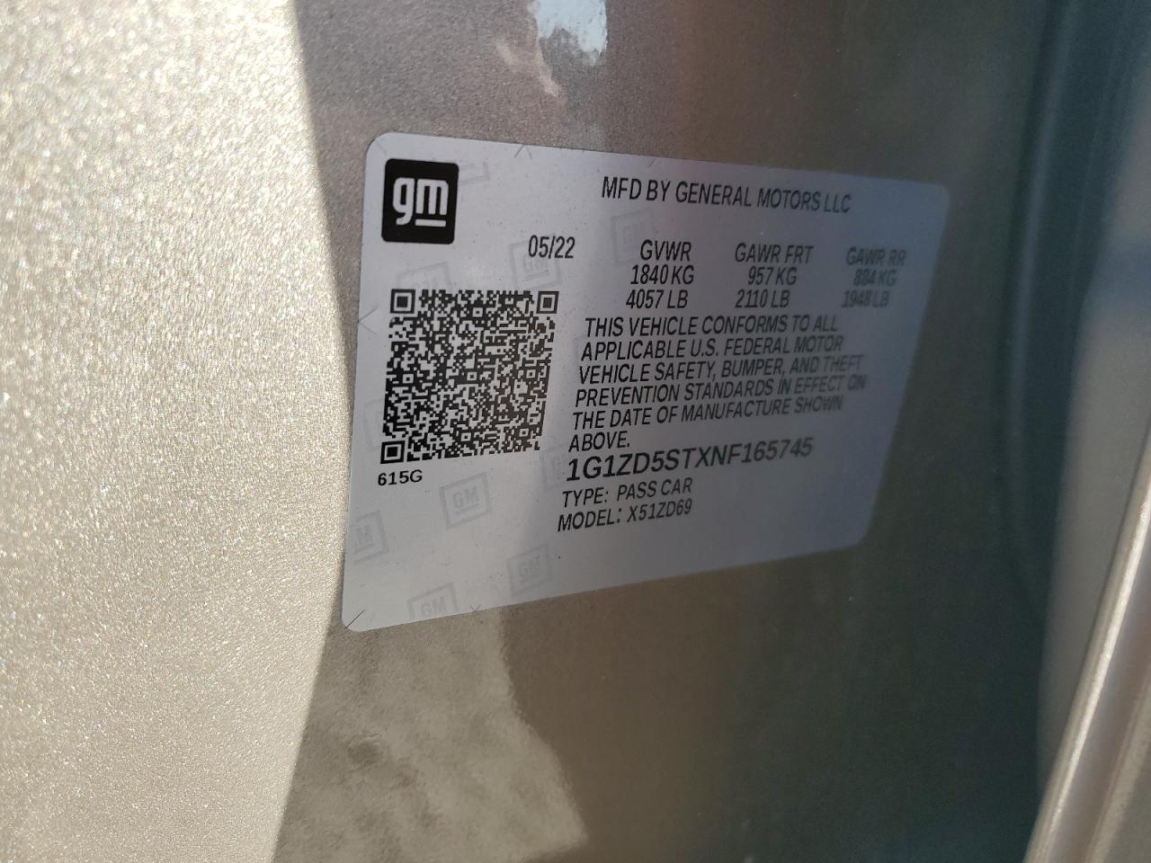 CHEVROLET MALIBU GRAY 1G1ZD5STXNF165745