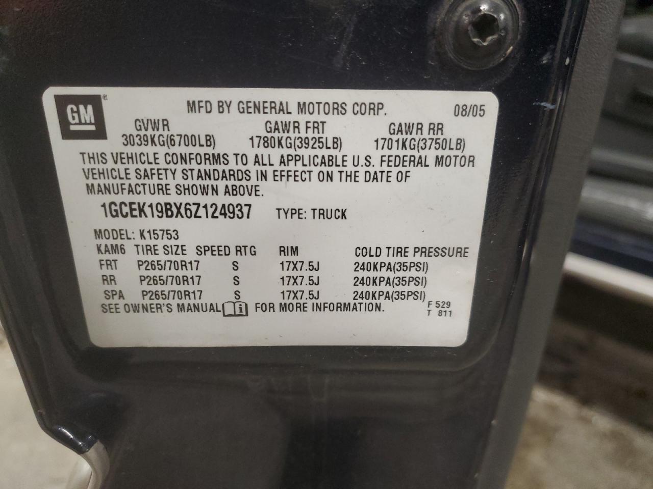 CHEVROLET ALL Models BLUE 1GCEK19BX6Z124937