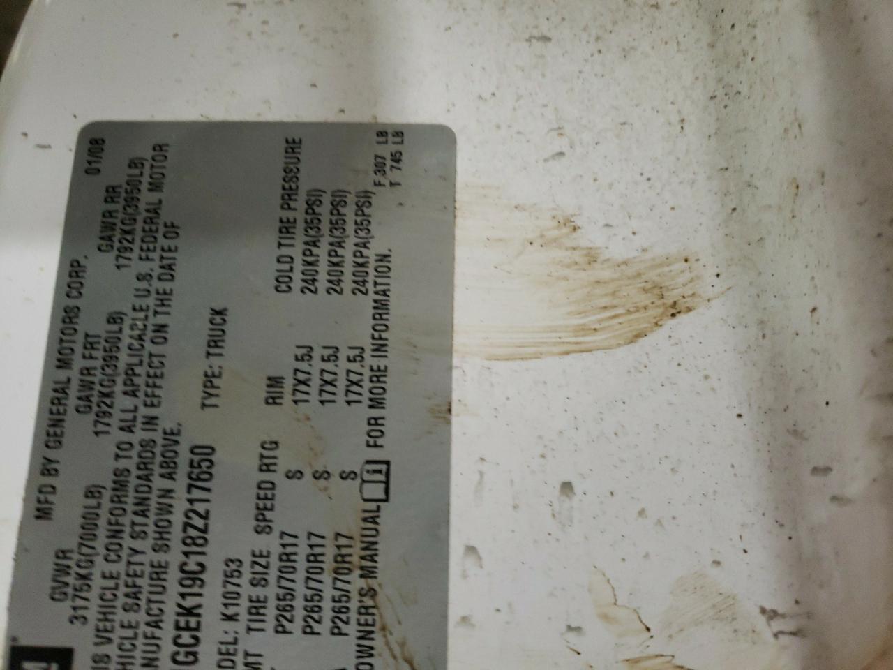 CHEVROLET ALL Models WHITE 1GCEK19C18Z217650