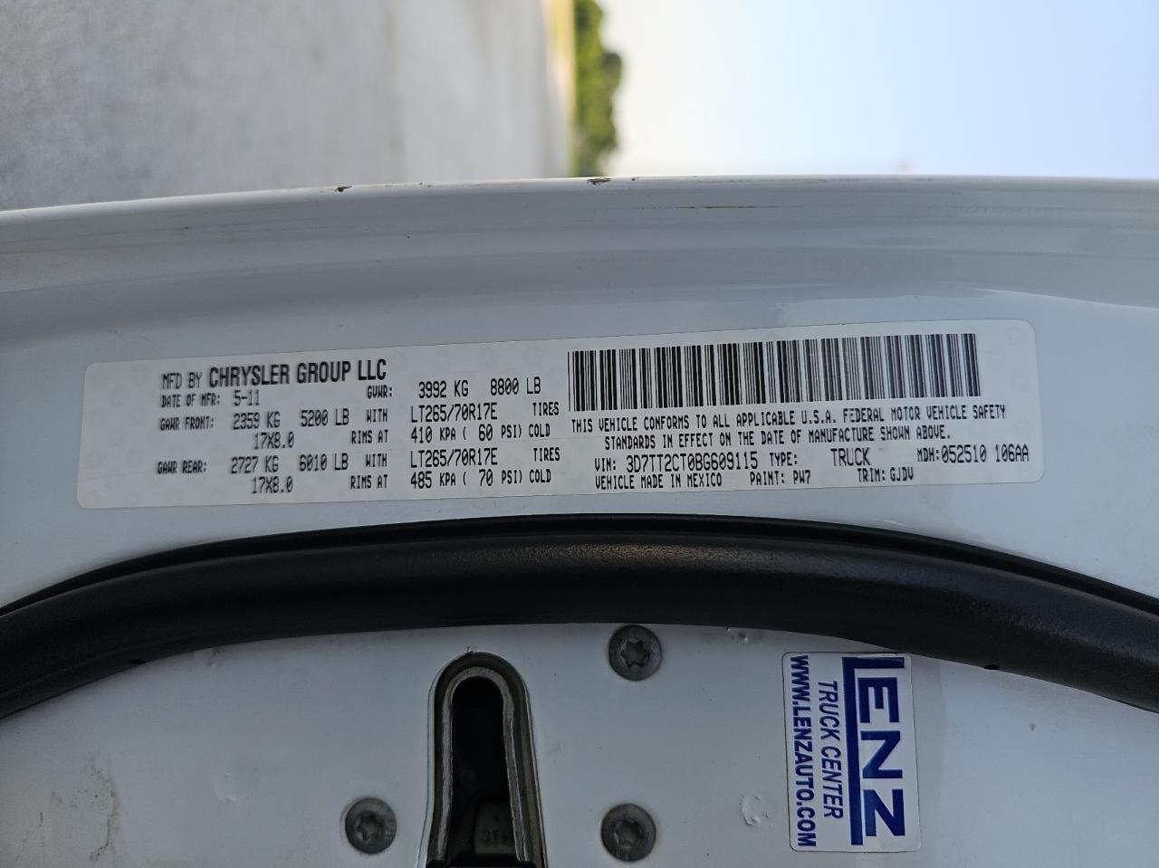 DODGE All Models WHITE 3D7TT2CT0BG609115