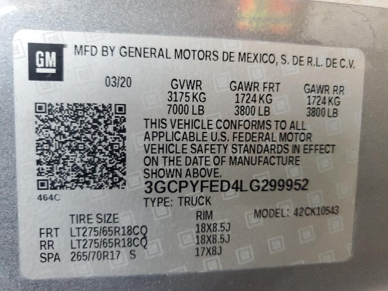 CHEVROLET ALL Models GRAY 3GCPYFED4LG299952