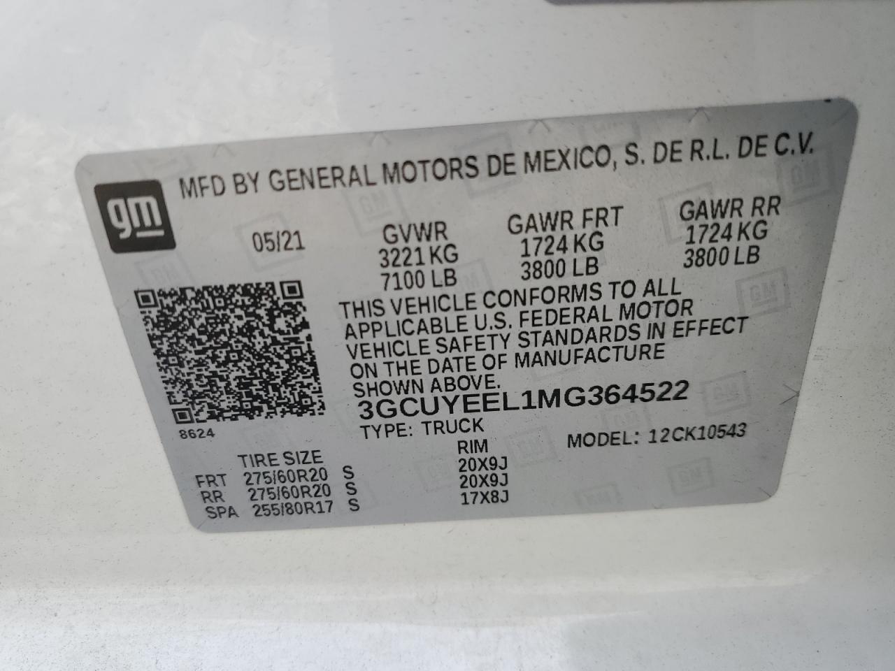 CHEVROLET All Models WHITE 3GCUYEEL1MG364522