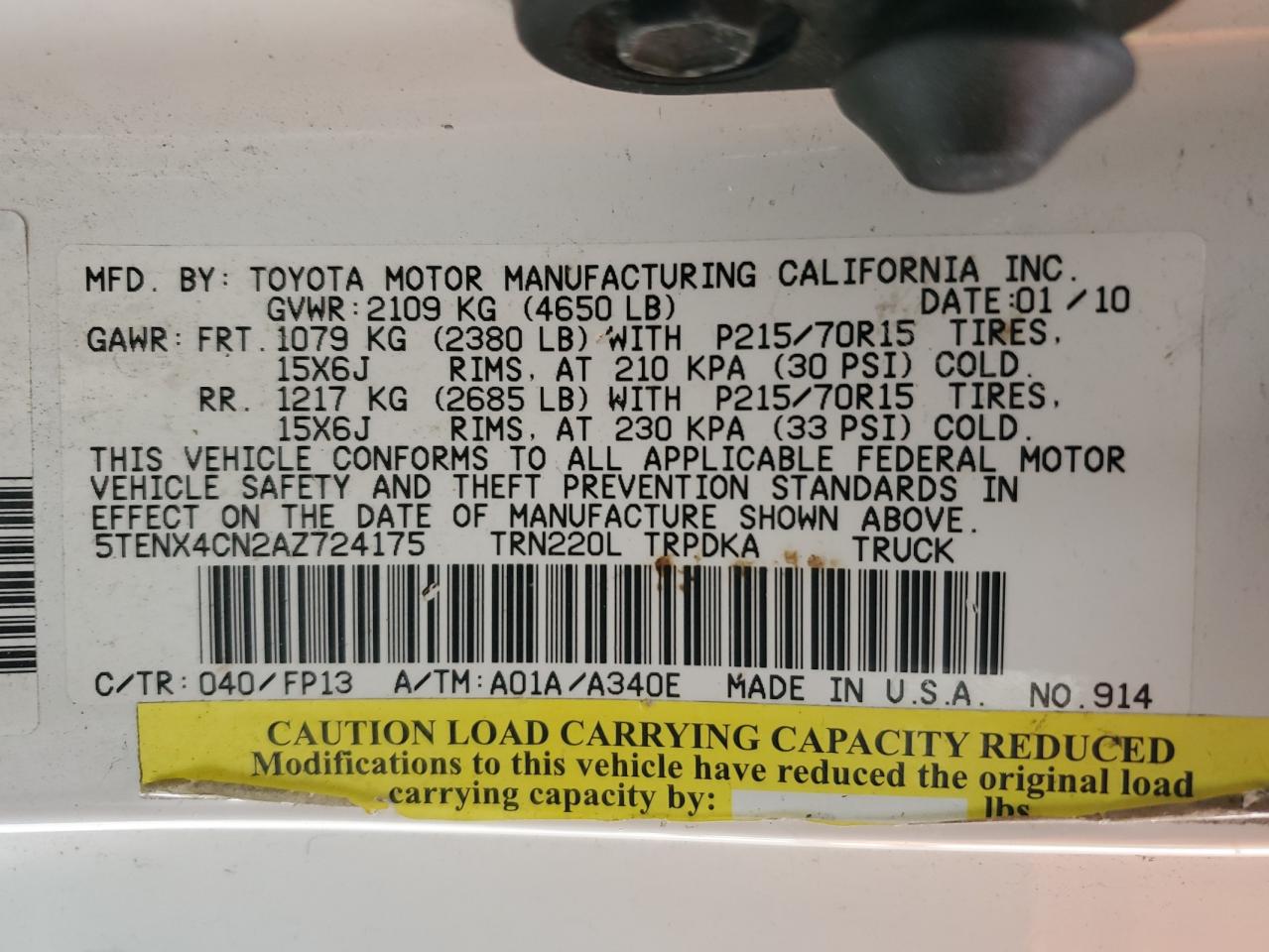 TOYOTA All Models WHITE 5TENX4CN2AZ724175