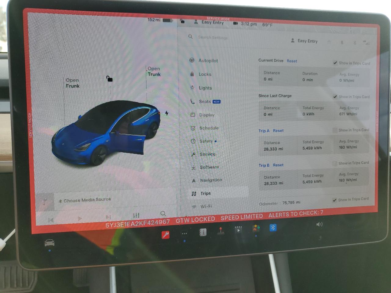 TESLA MODEL 3 BLUE 5YJ3E1EA2KF424967
