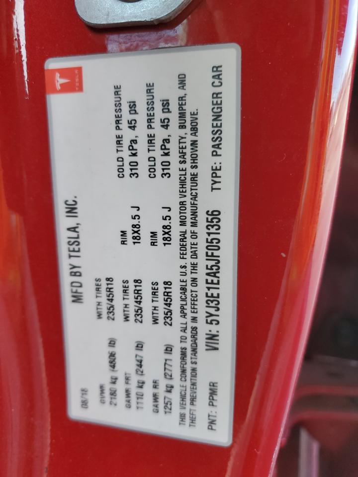 TESLA MODEL 3 RED 5YJ3E1EA5JF051356