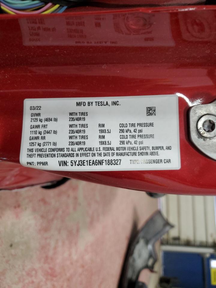 TESLA MODEL 3 RED 5YJ3E1EA6NF188327