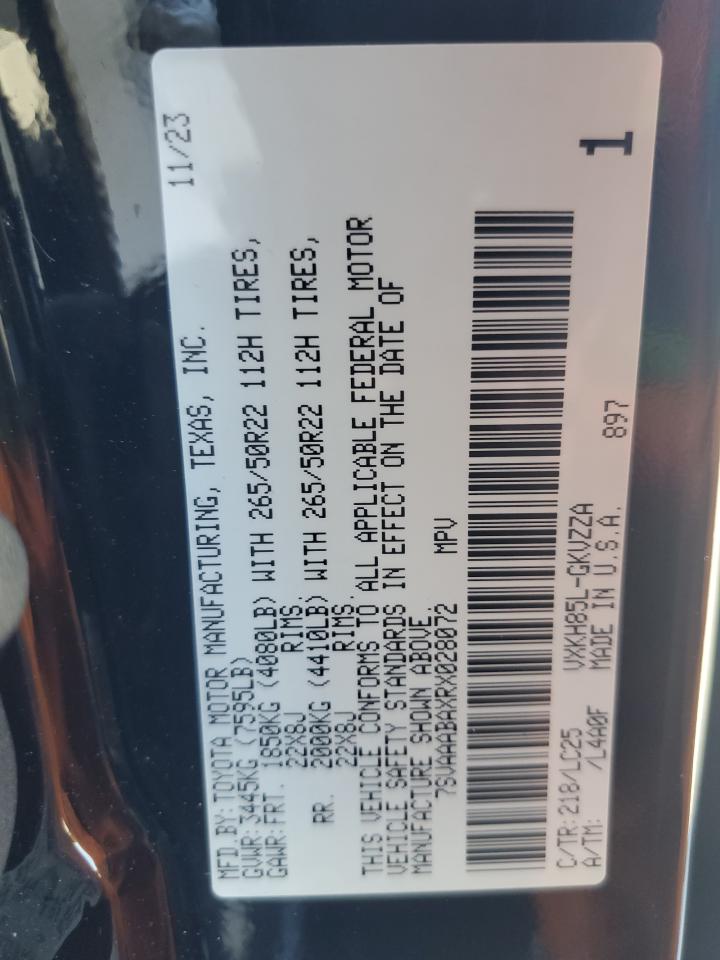 TOYOTA SEQUOIA BLACK 7SVAAABAXRX028072